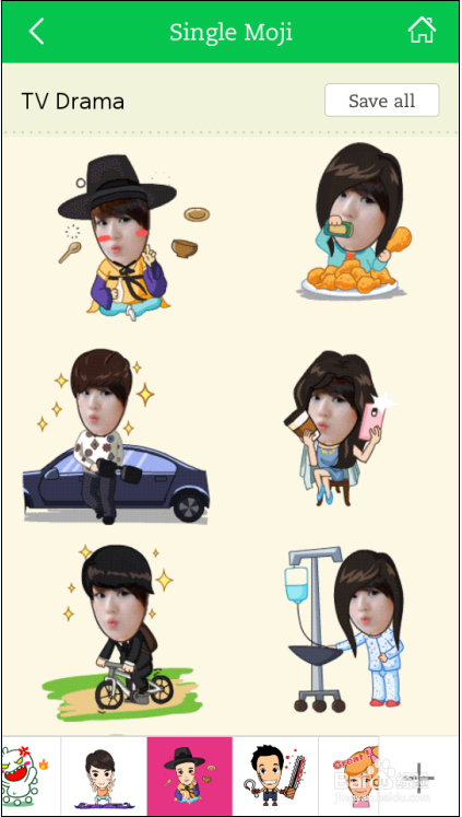 好了,此时就可以在新页面上看许多已经自动产生的动画表情了,用手指划动页面,可以选择其他风格的动画表情哦。喜欢哪一个表情,直接点击一下。