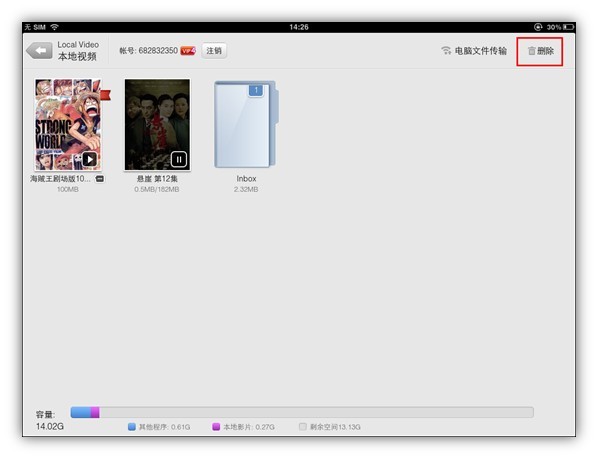 (注明:目前ipad离线空间的影片不支持进行下载到看看HD上)