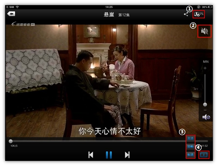 ③清晰度切换选择,如果影片无其他清晰度,此功能无法使用;
