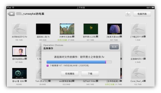 2、视频通过无线共享助手添加成功后,打开看看HD中的迅雷共享