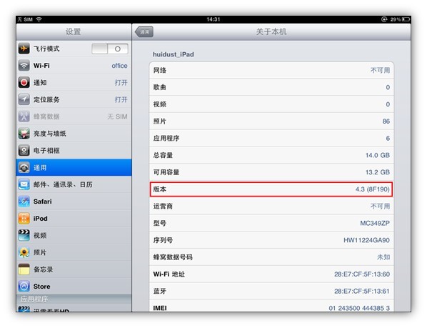 如何查看ipad版本号?