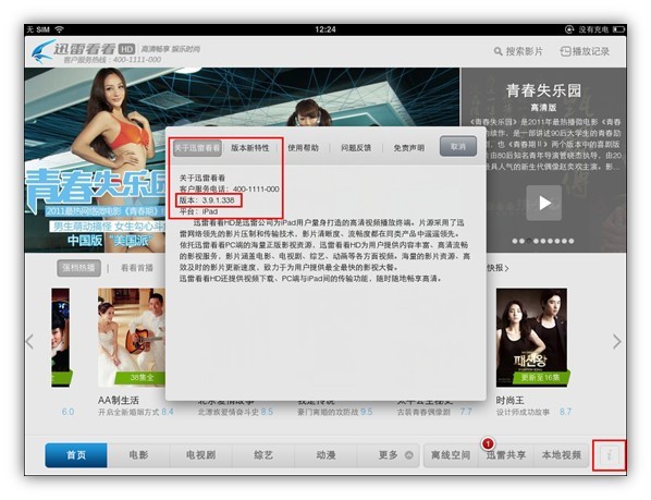 如何查看ipad迅雷看看HD的版本号?