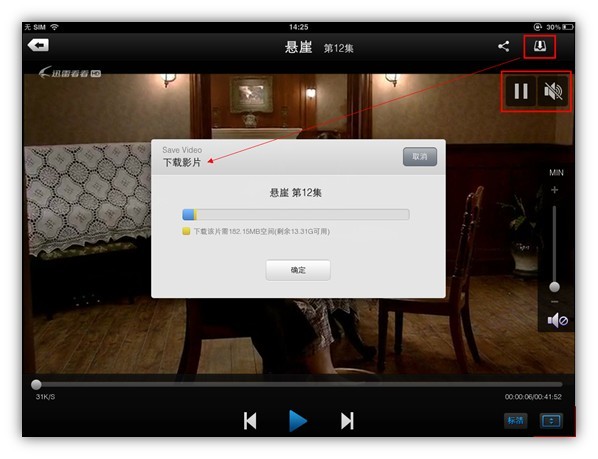 (只支持迅雷看看HD的影片下载,如是迅雷共享的影片或离线空间的影片,无此功能)