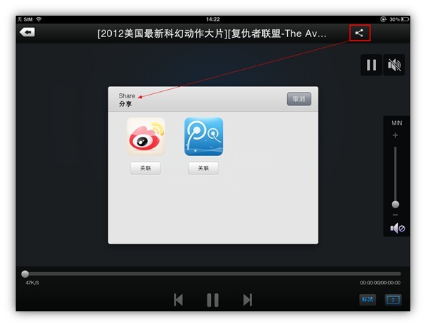 2.支持离线空间视频分享、本地视频分享、在线播放视频分享。