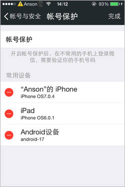 iPhone、android路径:登录微信=》我=》设置=》帐号与安全=》帐号保护=》右上角的“编辑”=》删除登录过的设备即可。