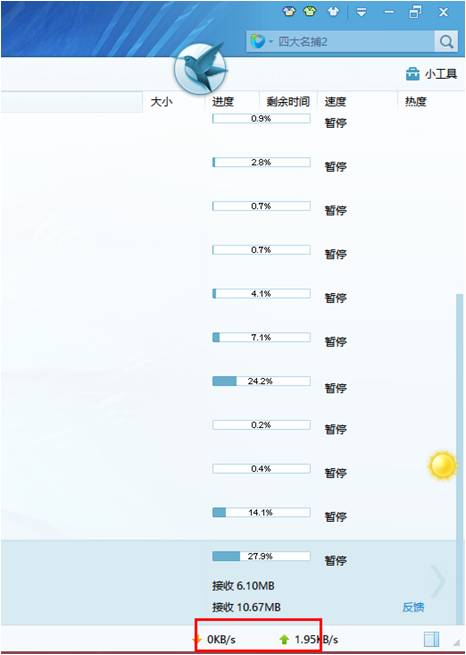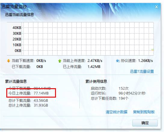 每上传100M的流量才会获得1点的阳光值,可能是上传的流量不够,请看到迅雷7右下这里的流量监控,今天上传了多少流量,进行计算是否的确没增加阳光值。