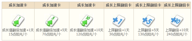 可以使用道具来改变成长值积累速度与每日积累上限.