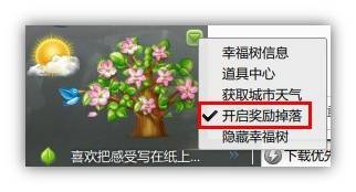 从新开启掉落奖励,需要通过迅雷7主界面左下角的幸福树上,点击右上角的箭头弹出设置菜单,勾选“开启奖励掉落”即可。