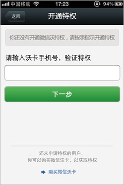 如果您使用的是微信5.0以下版本,请升级到5.0或以上版本,以保障特权的正常使用。
