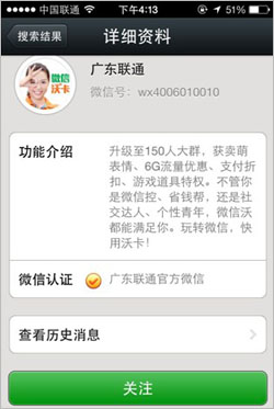 2、选择“查找公众号”,搜索“广东联通”“陕西联通”“沃江苏”“沃浙江”。