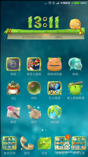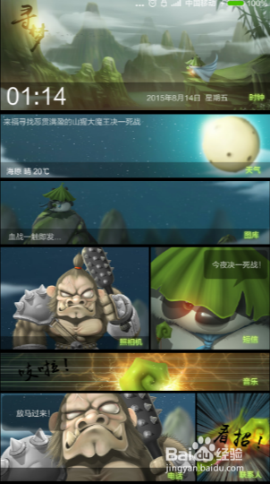 此时就可以发现小米4手机桌面发生了变化,超级萌类卡通桌面看上去很清新。其中锁屏界面看上去更有兴趣,更萌萌哒。
