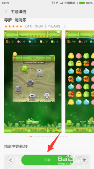 待进入对应主题详情界面后,直接点击“下载”按钮。此时对应的主题将会被下载到手机内存中。