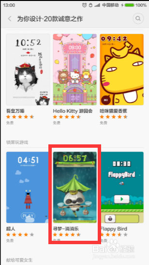 在锁屏界面中,点击左下角的“Play Game”按钮就可以在锁屏状态下玩手机游戏啦。根据主题风格的不同,其游戏内容也是不同的。