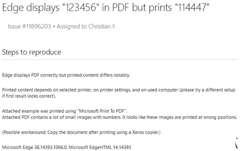 用Edge看PDF文档存在一个非常无语的BUG,在电脑上看的好好的数字,打印出来就乱了套。
