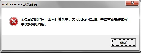 问题三:无法启动此程序,因为计算机中丢失 d3dx9_42.dll。尝试重新安装该程序以解决此问题。