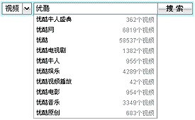 搜索结果将可能包括 "优酷", 也可能包括 "视频"。