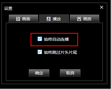 使用三种连播模式,播放器设置中需要启用“始终自动连播”。