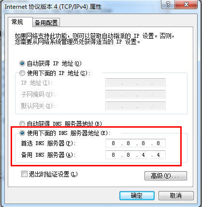 3) 设定使用下面的dns地址;