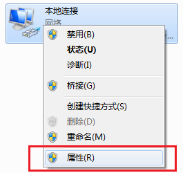 1) 打开网络连接,右键查看网络连接属性;