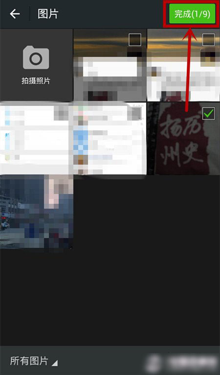 5、微信会进入相册,我们勾选需要的图片,再点击“完成”。