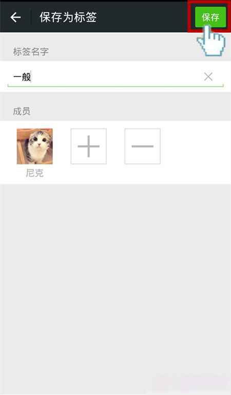 9、系统会提醒你设置标签进行分类,再点击“保存”,即可完成单条微信谁可以看权限。