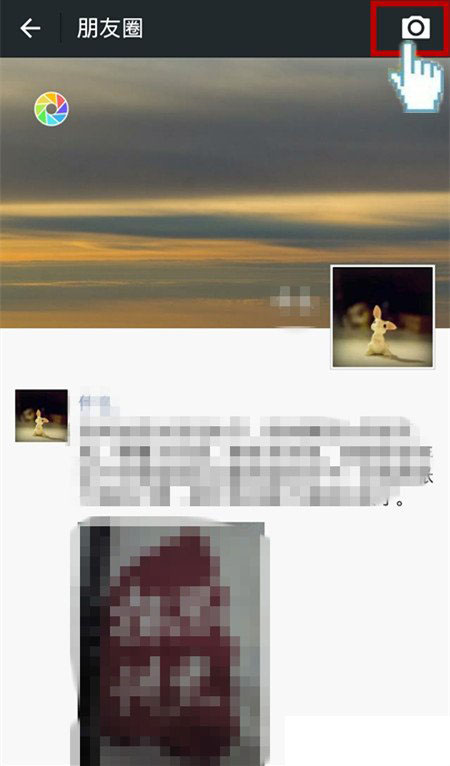 3、进入“朋友圈”后,我们点击右上角的“照相机”图案。