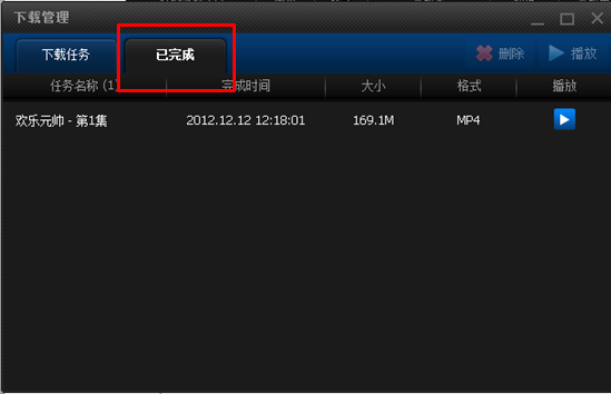 4、下载任务可以暂停、删除。下载完成后双击即可在PPTV网络电视客户端内播放。