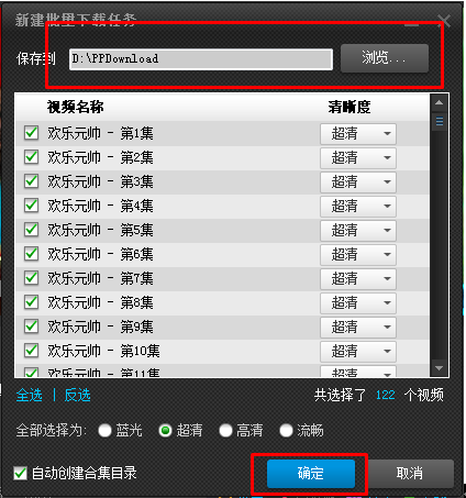 2、 出现新建下载任务窗口,默认将保存到PPDownload文件夹。您可以选择您希望保存的地方。