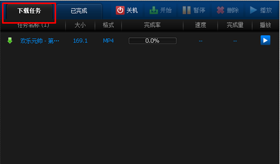 3、点击“确定”后,任务建立,转向下载面板,可以看到您已经存在的下载任务。