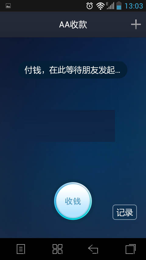 2、在一起AA界面,我们长按【收钱】按钮,可以对周围打开了一起AA的朋友进行搜索。当搜索到周围其它人时,此时会在屏幕上显示出该用户的头像和姓名,发起人点击一下头像就能向它们收款了。如果实在搜索不到,也可以通过点击右上角的加号进行手动添加。如下图所示: