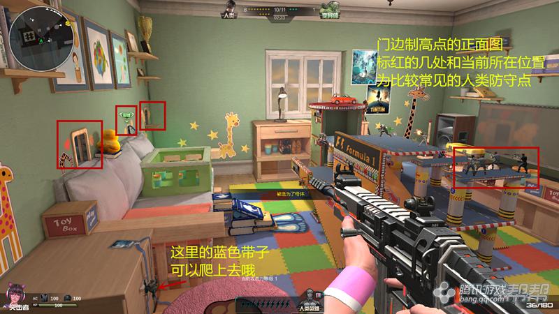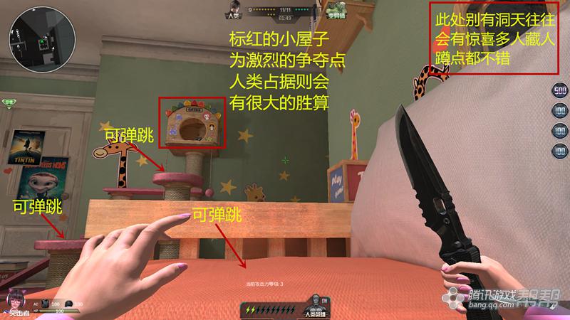 有图上可以看出,地图风格很清新童话,地图色彩也很鲜艳,几处防守点各有利弊,还是看人多不多,能不能集中人员在一两点。集中火力,往往就会有很大胜算,变异方也是一样。