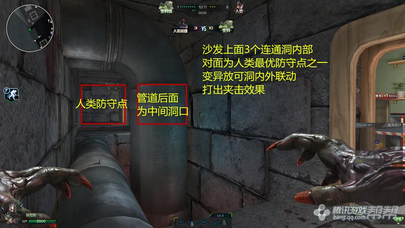 沙发上面3个连通洞内的角落也是个好点多人蹲守点,但是要注意异形内外夹击。