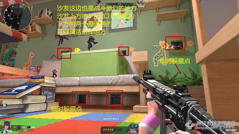 沙发这边也是交火很多的地方,沙发上方3个连通的小洞,有很好的位置优势。