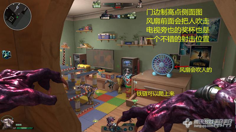 电风扇可以把人吹走,还经常有武器拿,但是有死角并不安全,如果准备在风扇处狙击变异方,要小心电视后面的小路,可以直接到后方,被偷袭。