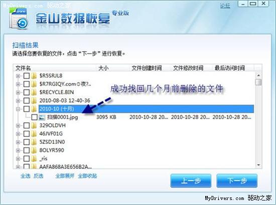 在扫描结果报告中会显示文件名、文件大小、文件创建时间、修改时间、最后访问时间,从上图的扫描结果报告中我们可以看到金山毒霸数据恢复工具顺利帮笔者找回了几个月以前删除的文件,而且文件恢复后还能保持完整性,恢复能力非常不错。