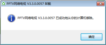 5、PPTV网络电视 成功删除后,会出现以下提示框