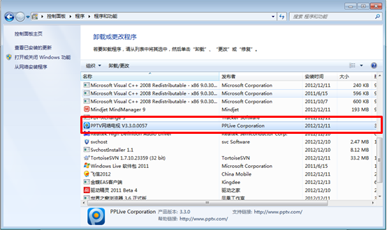 4、选择希望删除的文件信息,点击“卸载”,即可把PPTV网络电视从您的电脑上删除