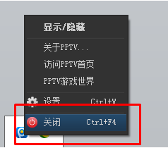 您在操作系统托盘中找到PPTV图标,点击鼠标右键,选择“关闭”即关闭PPTV程序。