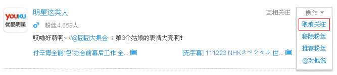 找到要取消关注的人,然后点击“操作”下拉菜单中的【取消关注】即可。