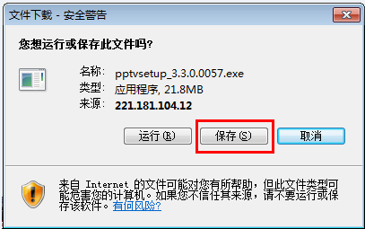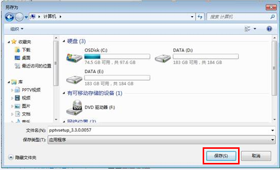 3、选择您的存放“PPTV网络电视”的位置,点击“保存”