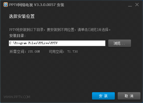 1、双击PPTV网络电视安装包(比如:“pptvsetup_3.3.0.0057.exe”),开始安装
