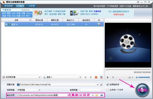 4、设置输出视频的存储目录,然后点击“转换”按钮就可以开始转换输出消音之后的视频