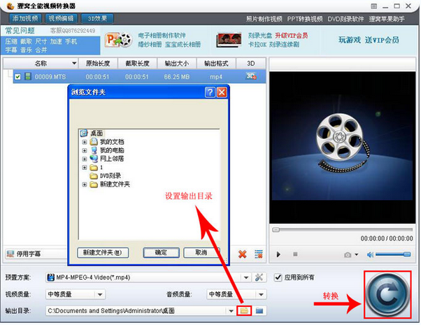四、设置输出目录,也就是文件的存储路径,点击主界面右下角的转换按钮,即可开始转换。转换的过程中可以直接把转换器的窗口最小化,继续运行别的程序,狸窝全能转换器不会与其它程序发生冲突。
