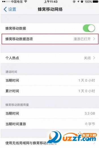 ②点击蜂窝移动数据选项