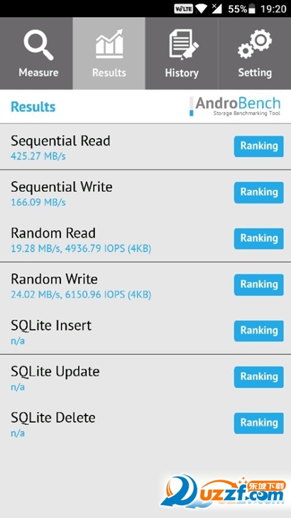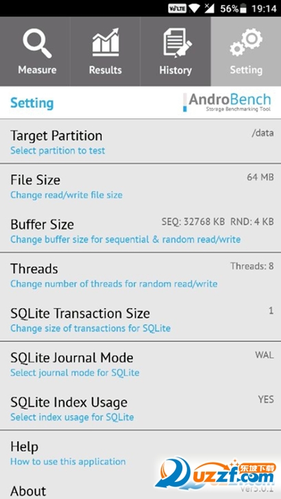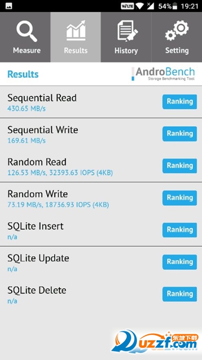 AndroBench是一个基准测试应用程序,可以衡量你的Android设备的存储性能。 AndroBench提供两种方式,第一种可以快速与其他设备的存储进行比较。第二种 SQLite可以查询数据库表。要想获得正确的结果,请运行AndroBench时减少后台活动。 AndroBench是免费提供的,没有任何广告,你可以随意使用它。