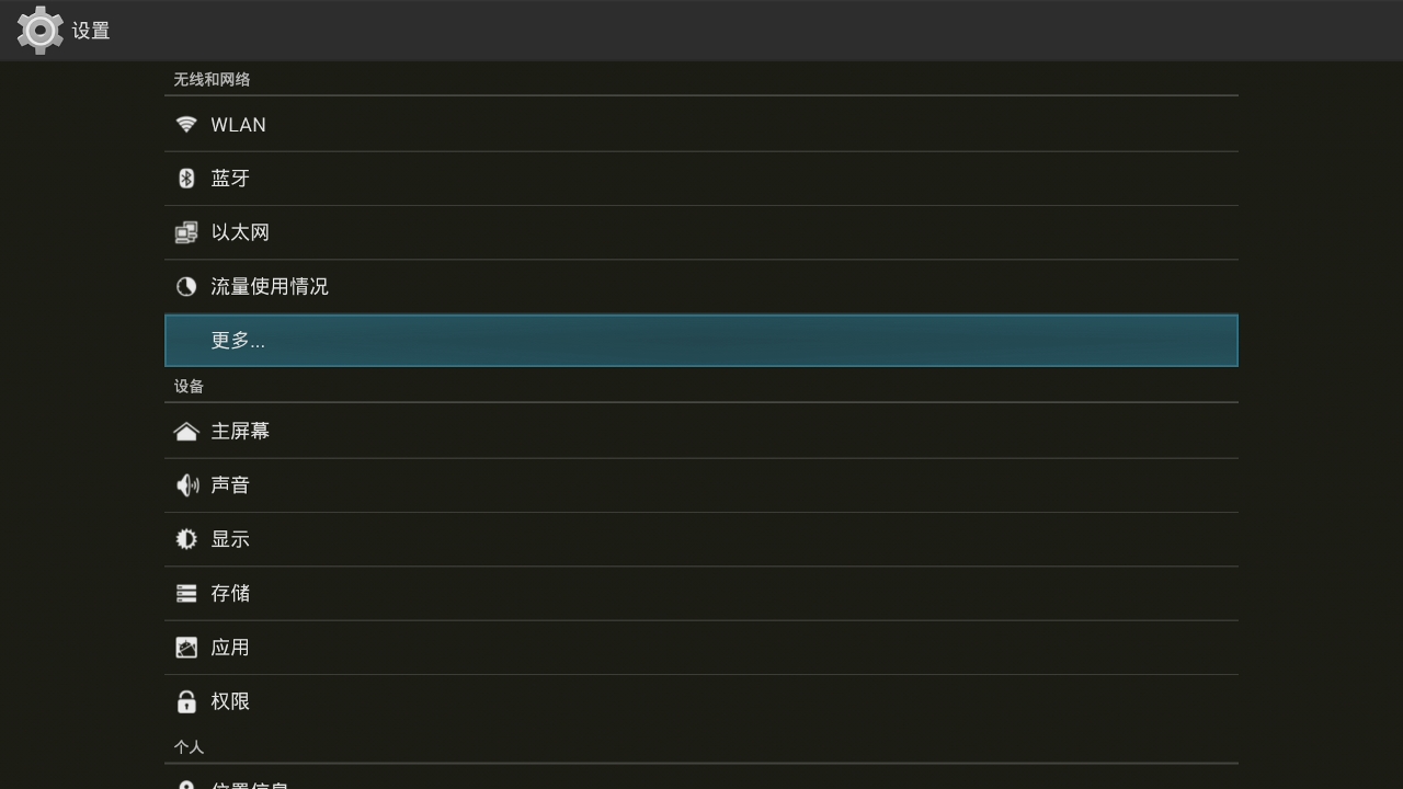 4.进入WEBOX增强版的暗黑界面,我们就能够很简单打开无线WIFI热点共享了。进入更多的选择后,就会看到便携式热点。