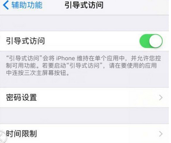 这样之后,自己要走开的时候,就可以连按三次Home键开启引导式访问的模式。