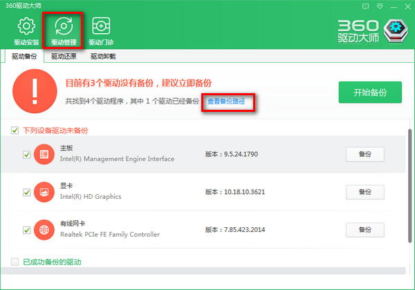 2、打开之后,会自动检测电脑驱动,等它检测完毕之后,就点击下图标记的驱动管理