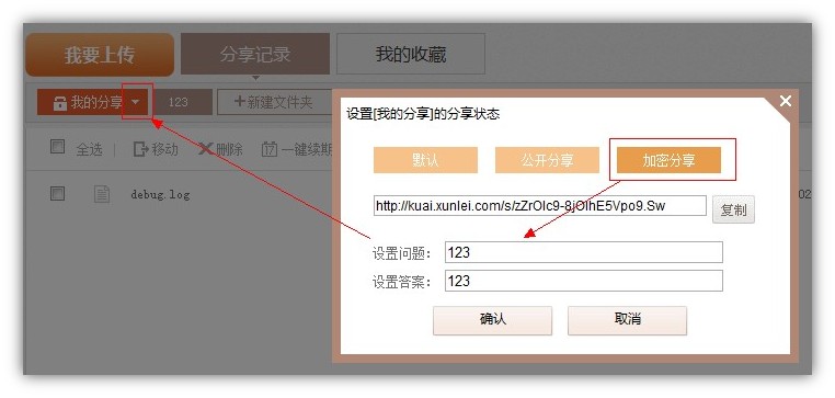 在迅雷快传页面上新建一个文件夹,然后分享列表里面以上传完成的文件移动到文件夹里面,然后鼠标放置新建的文件夹上面会有一个列表显示出来(分享文件夹,重命名,删除)带年纪分享文件夹之后选中弹框里面的公开分享即可。