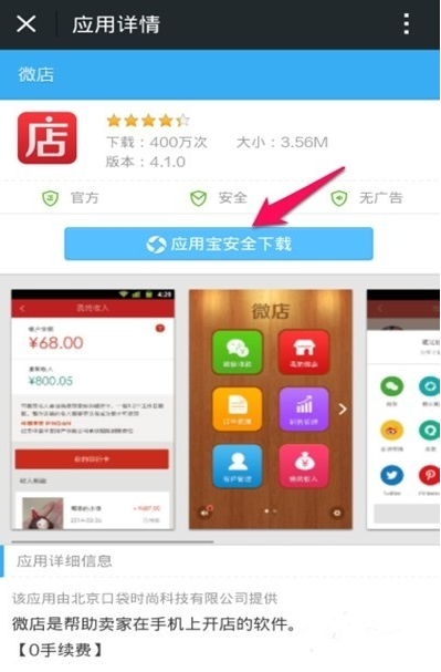 微店是由北京口袋时尚科技有限公司开发,是帮助卖家在手机开店的软件。微店作为移动端的新型产物,任何人通过手机号码即可开通自己的店铺,并通过一键分享到SNS平台来宣传自己的店铺并促成成交。降低了开店的门槛和复杂手续,回款约为1-2个工作日,且不收任何费用。